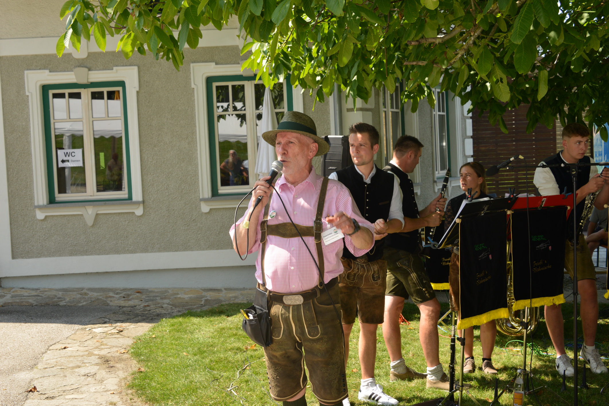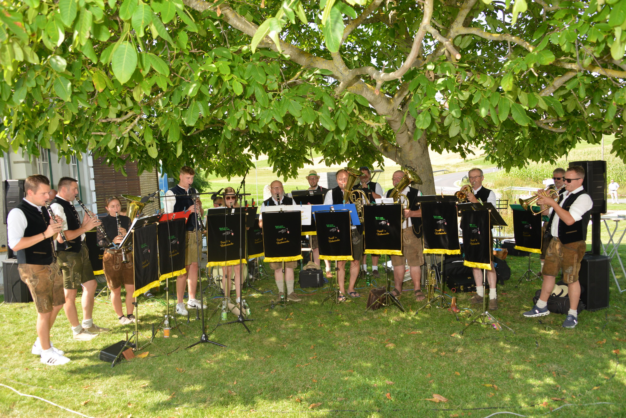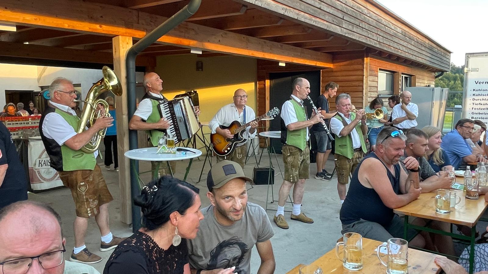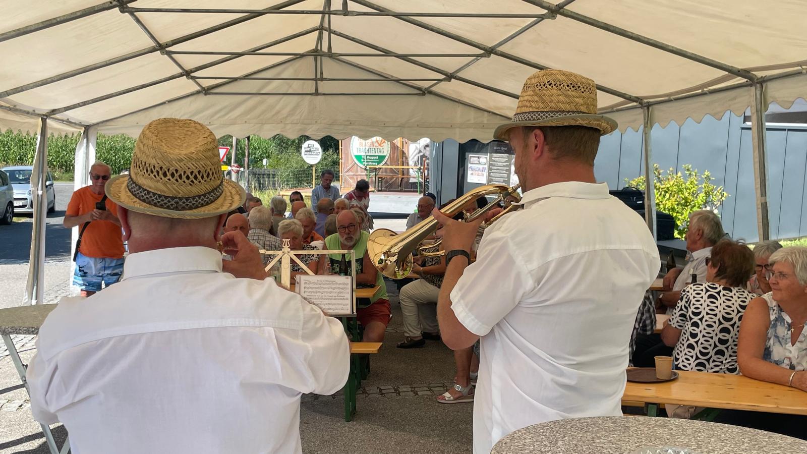 Nach vielen Proben in den 7 verschiedenen Musikheimen begann die Wirteroas 2024 mit einem Frühschoppen am Sonntag, 16.6., beim Partnerschaftsfest im Pfarrgarten Waldburg. Klarinettenstimmen werden bei Grenzenlos 7 normalerweise vom hohen Blech übernommen, bei diesem Frühschoppen wurden wir von 2 Musikern der Partnerschaftskapelle unterstückt.