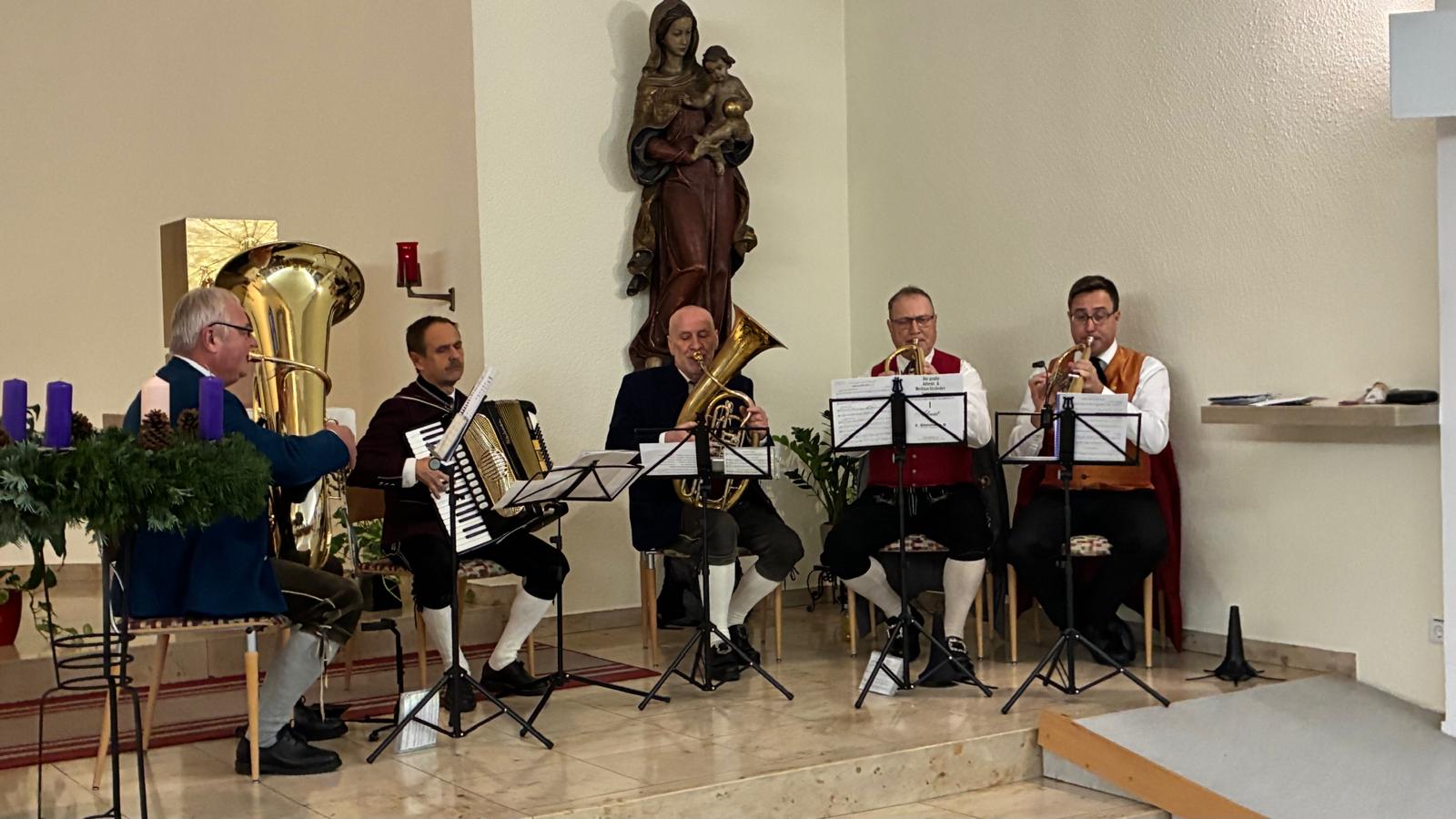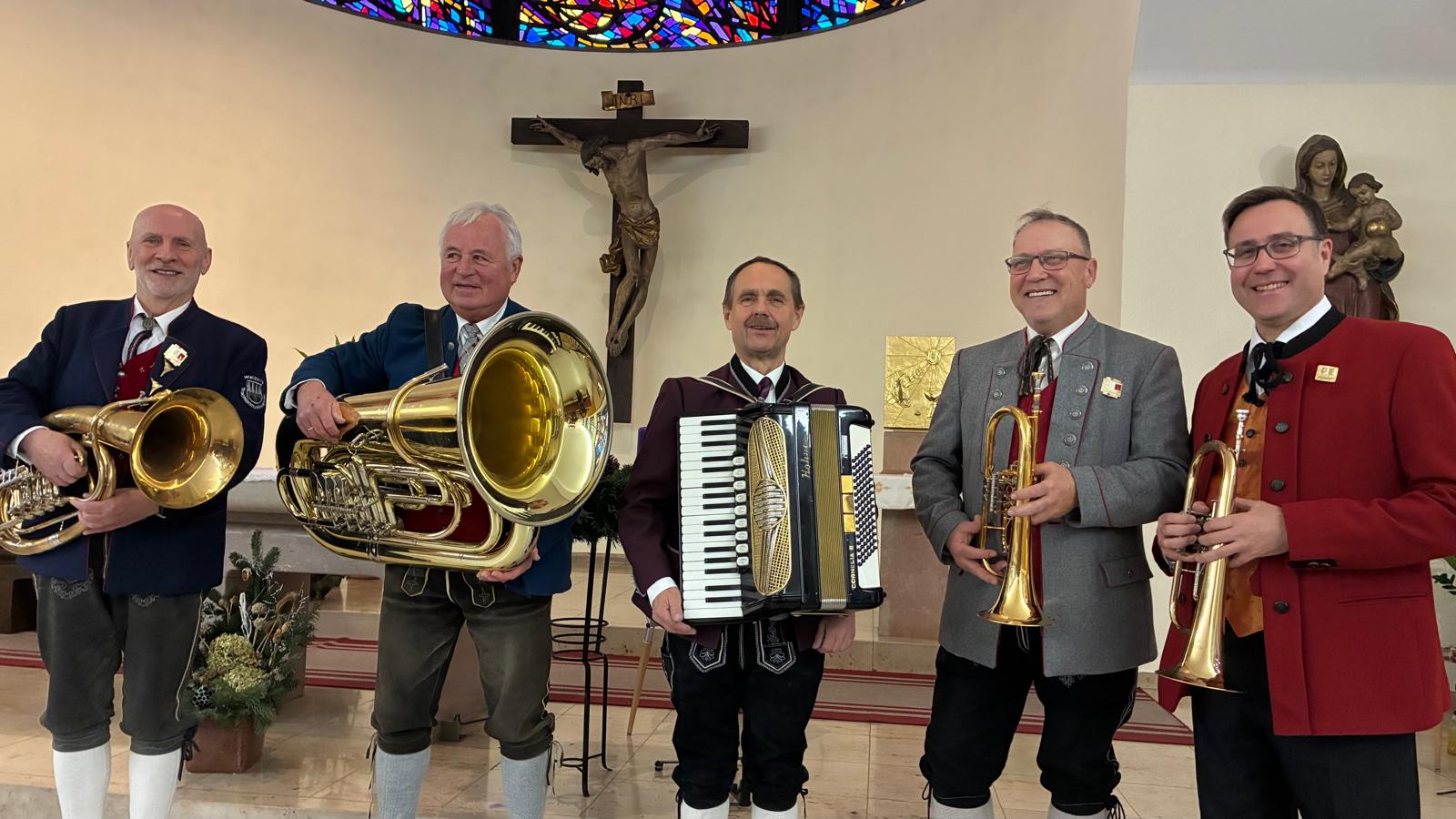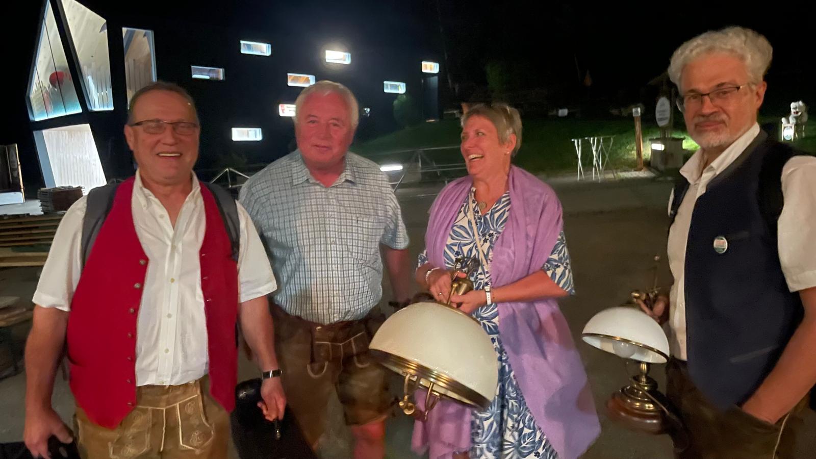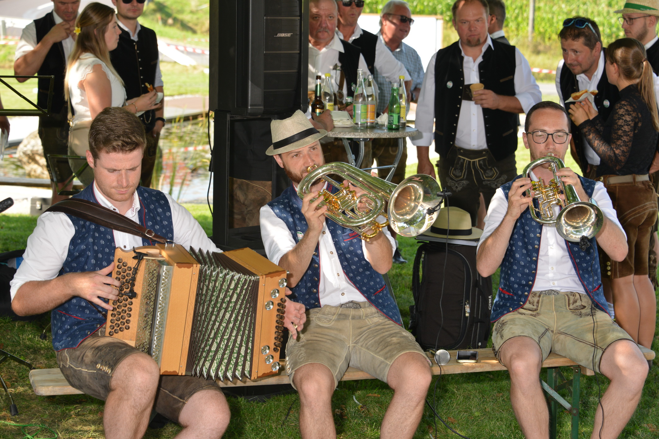 Nach vielen Proben in den 7 verschiedenen Musikheimen begann die Wirteroas 2024 mit einem Frühschoppen am Sonntag, 16.6., beim Partnerschaftsfest im Pfarrgarten Waldburg. Klarinettenstimmen werden bei Grenzenlos 7 normalerweise vom hohen Blech übernommen, bei diesem Frühschoppen wurden wir von 2 Musikern der Partnerschaftskapelle unterstückt.
