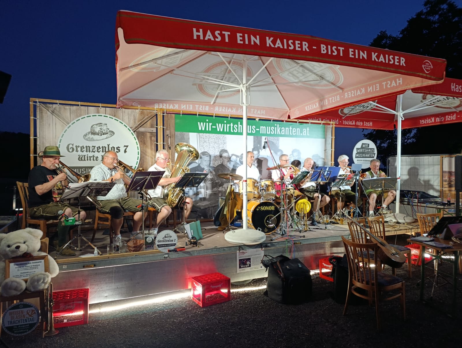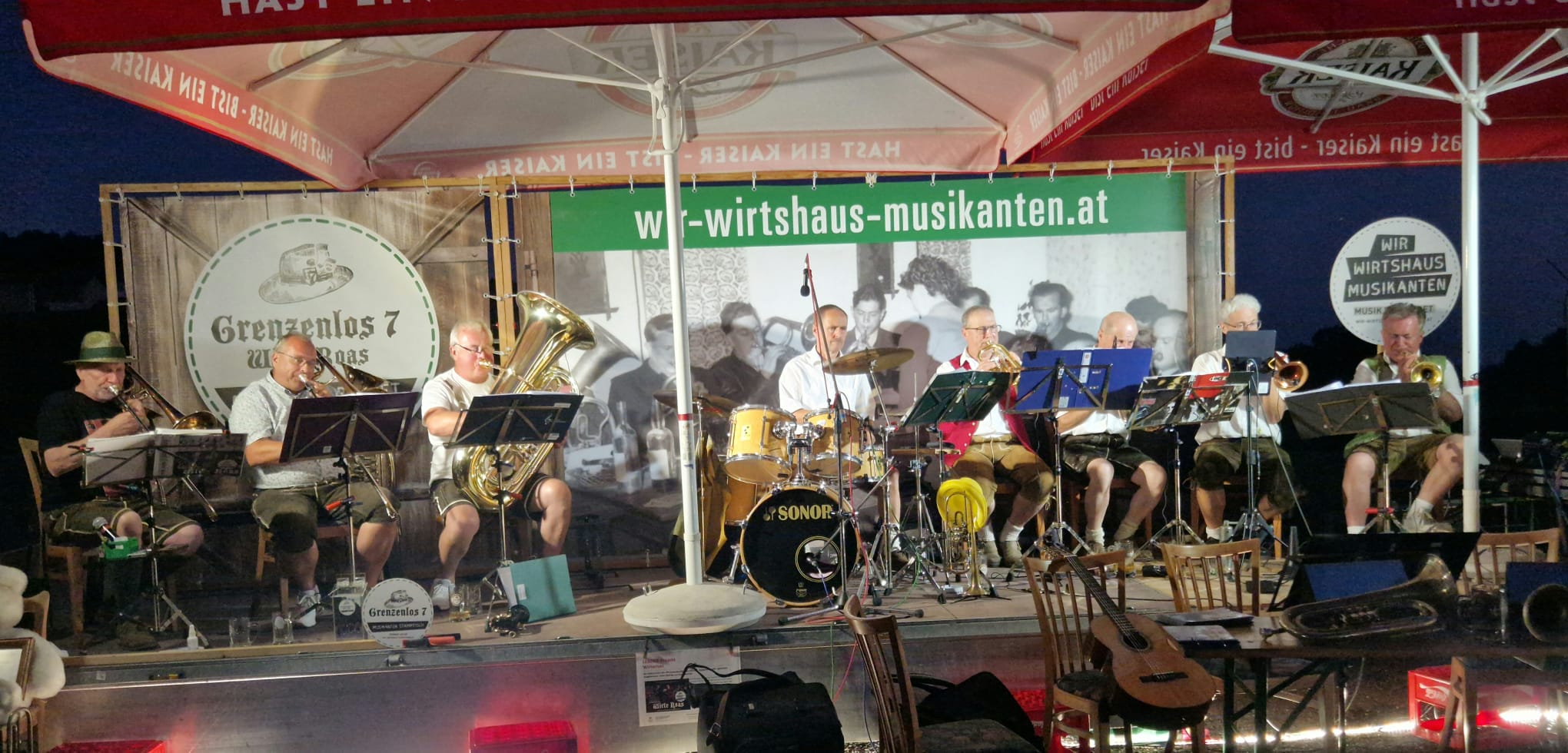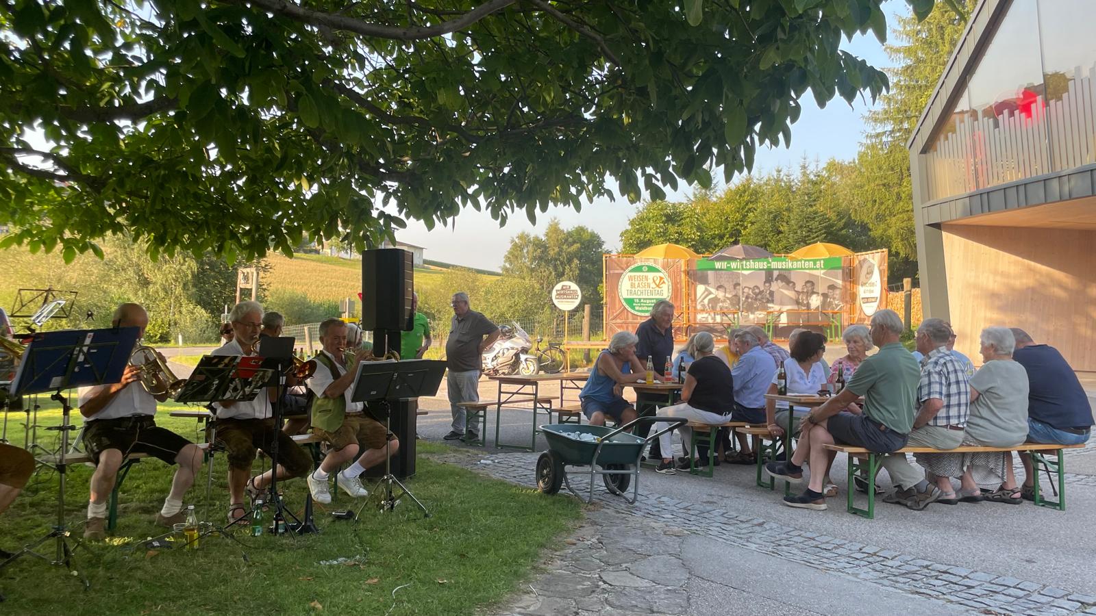 am Sonntag, 25.8., führte uns die Wirteroas zu einem Dämmerschoppen beim Kirchawirt in Gutau. Flügelhornspieler Josef Kiesenhofer organisierte diesen in seinem Stammwirtshaus. Im lauschigen Innenhof spielte Grenzenlos 7 bis zum Finsterwerden für das begeisterte Publikum. Das angesagte Regenwetter kam nicht. -
