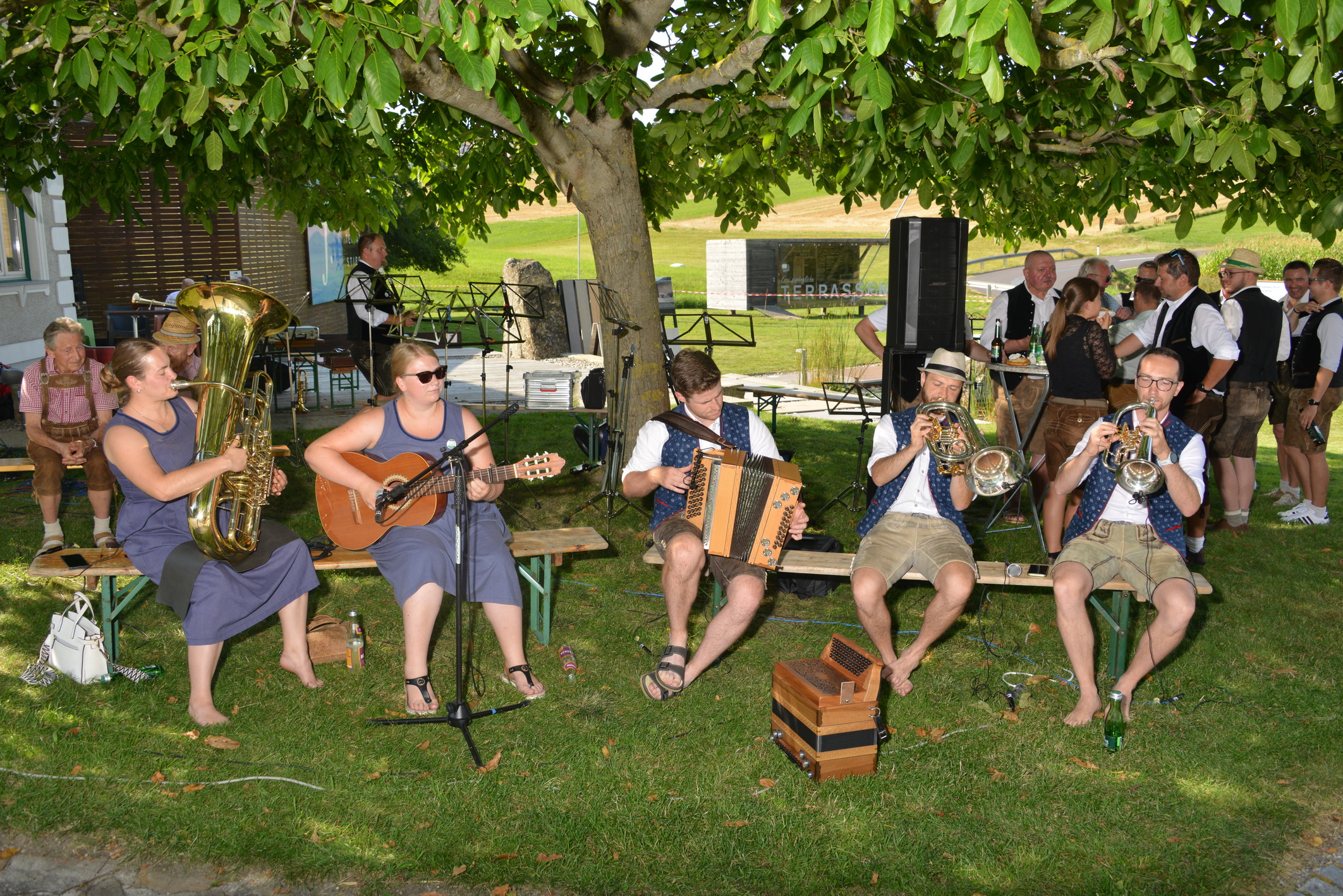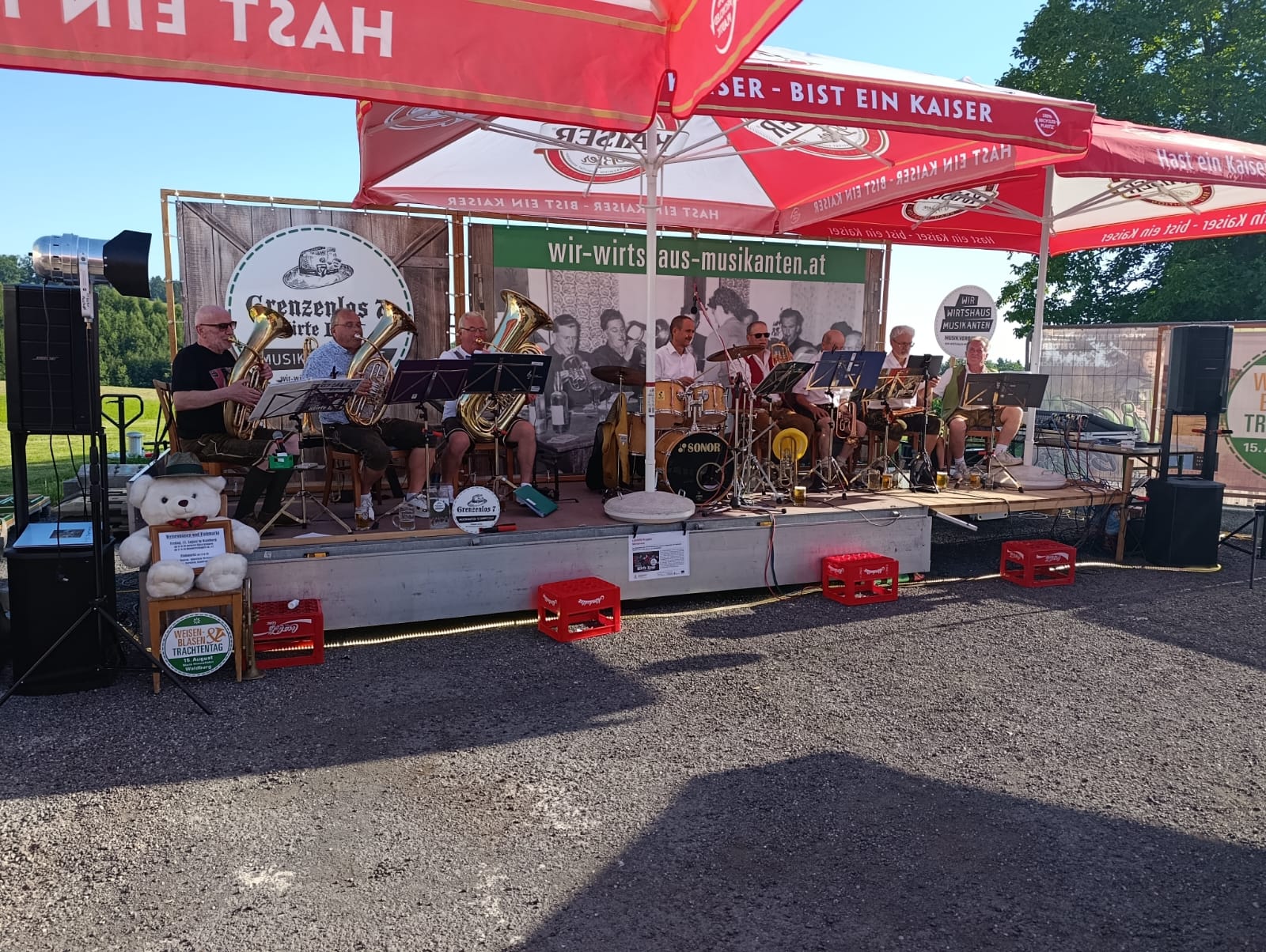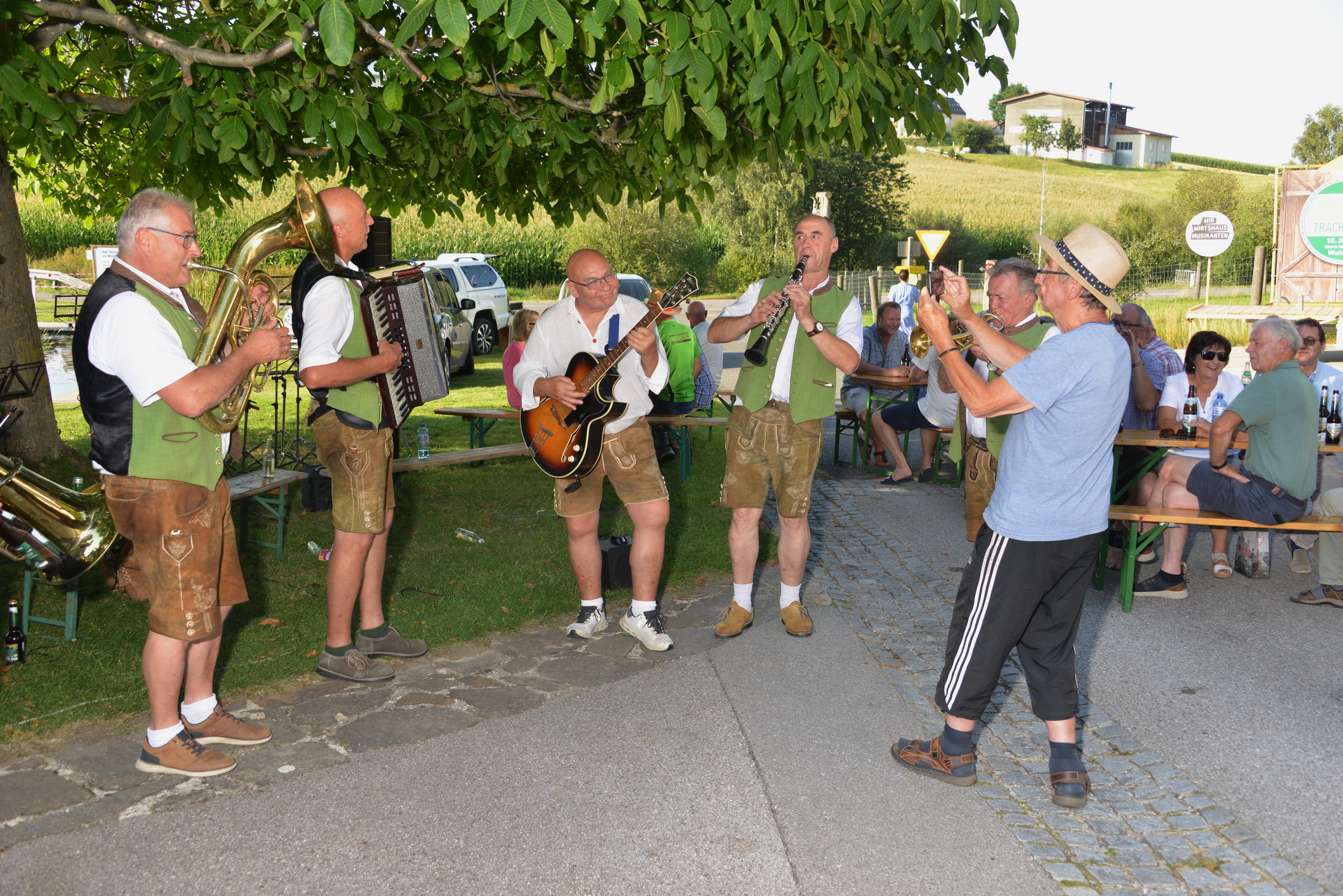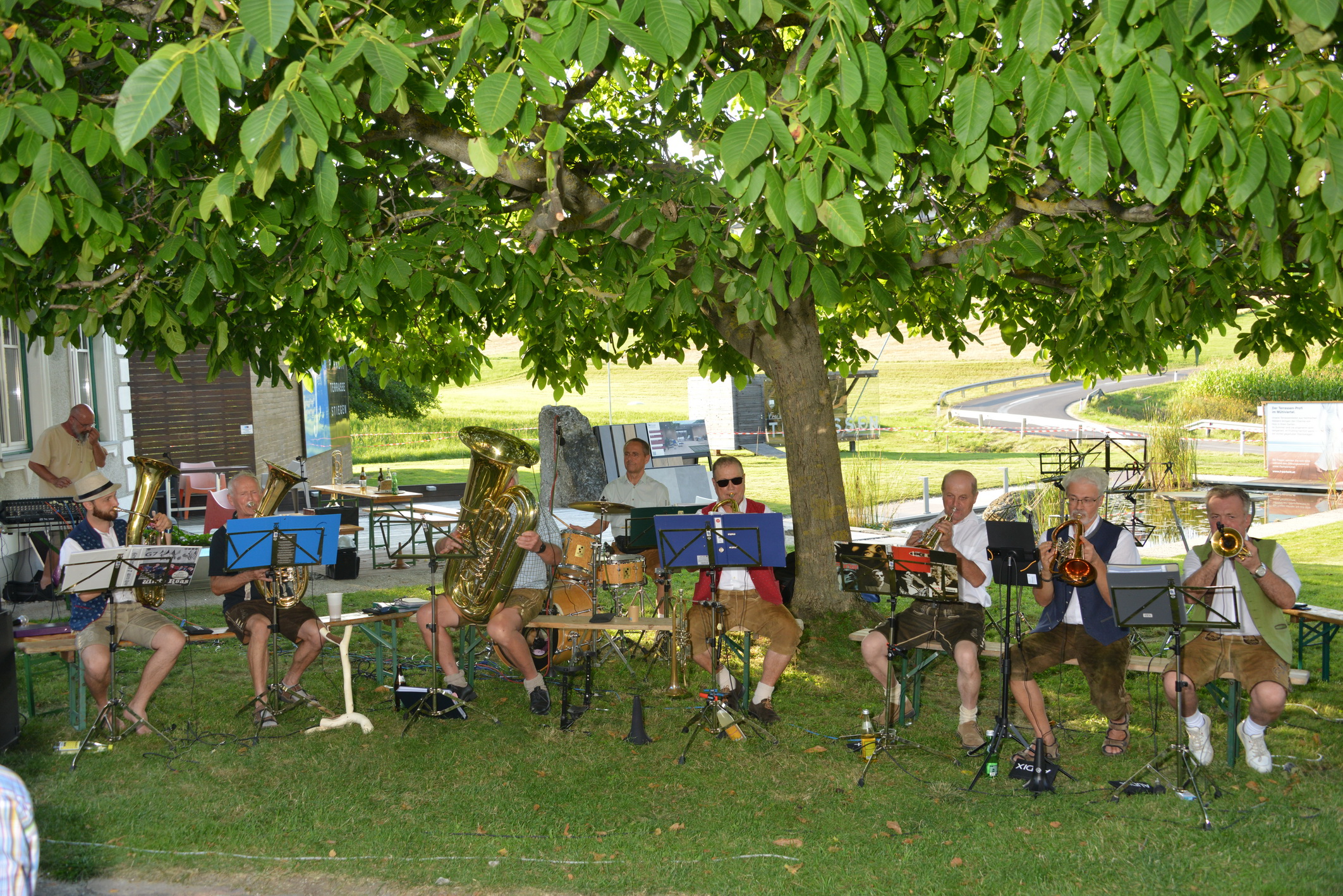 am Sonntag, 25.8., führte uns die Wirteroas zu einem Dämmerschoppen beim Kirchawirt in Gutau. Flügelhornspieler Josef Kiesenhofer organisierte diesen in seinem Stammwirtshaus. Im lauschigen Innenhof spielte Grenzenlos 7 bis zum Finsterwerden für das begeisterte Publikum. Das angesagte Regenwetter kam nicht. -